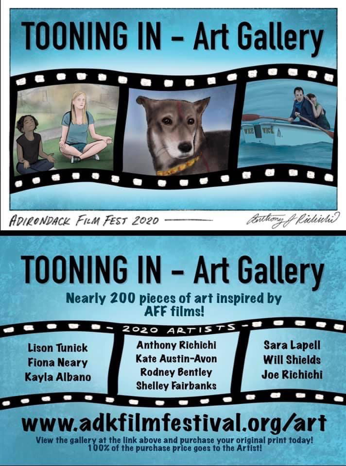 Several drawings for the "Tooning In" art gallery for the Adirondack Film Festival in 2019 & 2020.